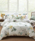 Aria enchants with a soft and romantic watercolour design featuring delicate hues, sage green piped edging and a sage green reverse. Printed on luxurious 220TC cotton sateen, this design whispers innocence and tranquility.