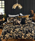 Inspired by Japanese silk panels, M.M Linen's Eda design exudes opulence and sophistication with golden vines and birds interlaced across a black background. Ivory reverse side. Printed on 220 thread count cotton sateen with a beautifully soft hand feel.