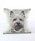 Westie in a Vestie is a charming old school pup dressed in a delightful knit vest. With bright eyes, and perky ears Westie brings a true ‘let’s have fun’ tail wagging energy into the room. His playful persona says he is ready for an adventure (or a biscuit!). An irresistibly sweet friend adding paw-some personality to your space! Digitally printed on polyvelvet featuring a deep green reverse and piped edging. Filled with a feather inner.