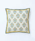 Olli Cushion, crafted in 100% cotton, is lightly textured and features a double Oxford edge in seagrass and ochre.   Satin stitching and other specialized embroidery techniques, give the motif texture and interest.