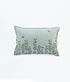 Embroidered with botanicals and bees, the Toby cotton canvas cushion in soft sage features twin needle edges and is filled with feather and down.  Plain reverse side.