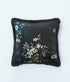 Delicate florals in pastel shades of sage green, ivory, pinks and purple adorn the Ciana printed velvet cushions. Deep charcoal base colour with olive reverse and black fringe. Available in two sizes.