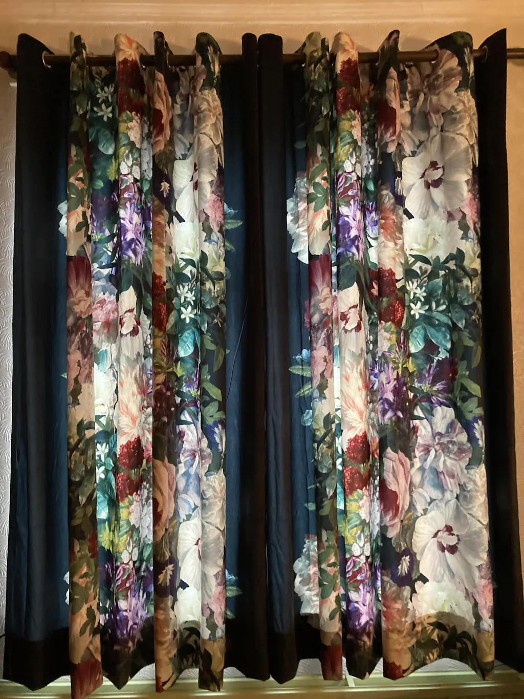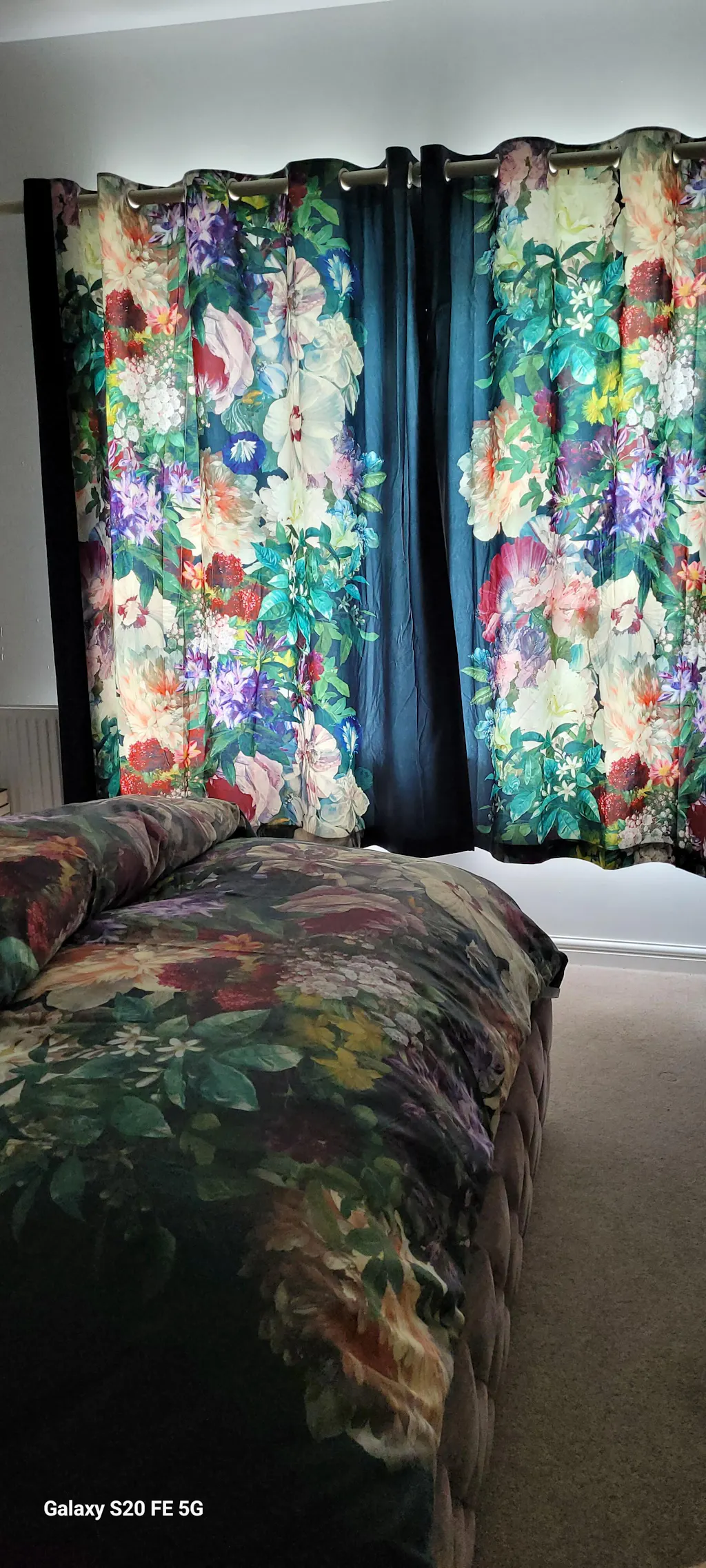 Our much loved Fiori design is now available in pairs of curtains. 100% poly velvet with microfibre lining and eyelet heading.